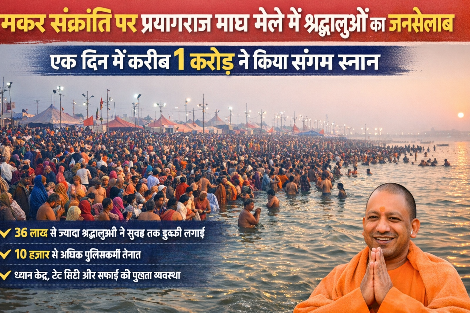 देवरिया। प्रयागराज में माघ मेले के दौरान मकर संक्रांति के पावन पर्व पर आस्था का अद्भुत नजारा देखने को मिला। गुरुवार आधी रात के बाद से ही गंगा और संगम…