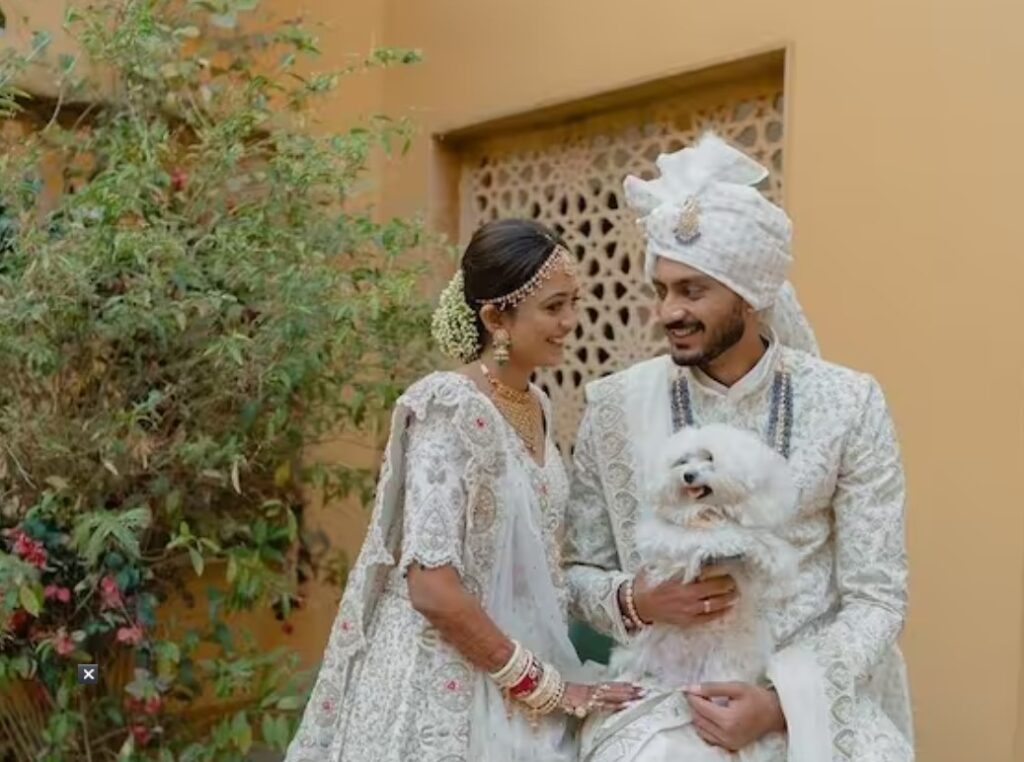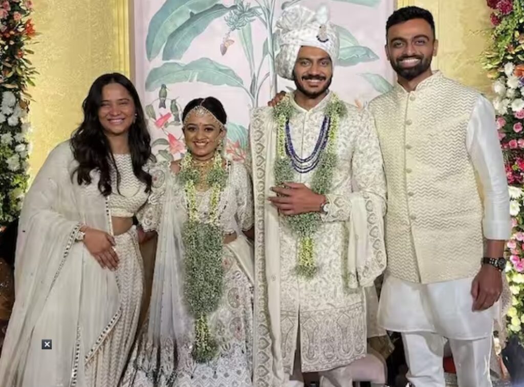 देवरिया । भारत में इन दिनों शादियों का सीजन चल रहा है। तीन दिन (23 जनवरी) पहले टीम इंडिया के स्टार बल्लेबाज केएल राहुल ने बॉलीवुड अभिनेत्री अथिया शेट्टी के साथ सात फेरे लिए थे। उनके बाद अब अक्षर पटेल भी बीते गुरुवार को शादी के बंधन में बंध गए। अक्षर ने अपनी मंगेतर मेहा पटेल के साथ गुजरात के वडोदरा में शादी रचाई। अपनी शादी पर उन्होंने सफेद रंग की शेरवानी पहनी जिसमें वह काफी स्मार्ट लग रहे थे। उनकी शादी की तस्वीरें सोशल मीडिया पर वायरल हो रहे हैं।