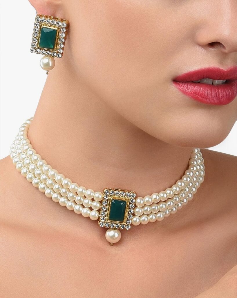 ज्वेलरी के बात हो और चोकर की बात ना हो ऐसा हो ही नहीं सकता। चोकर नेकपीस हमेशा से ही चलन में रहे हैं और आजकल इसका ट्रेंड और भी बढ़ गया है। अगर आप बहुत कम गहने पहनना पसंद करती हैं तो एक चोकर सेट आपके लुक को पूरा कर देगा। आजकल मार्केट में और ऑनलाइन स्टोर्स पर भी बहुत से चोकर के डिजाइन्स रिजनेबल प्राइस में उपलब्ध है। आप अपने आउटफिट से मैच करता हुआ चोकर का सेट ले सकते हैं। चोकर के साथ मैचिंग इयर रिंग और बिंदिया का भी सेट मिल जाता है।