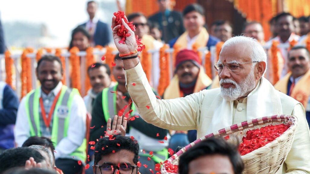 पीएम ने श्रमजीवियों पर फूलों की वर्षा की