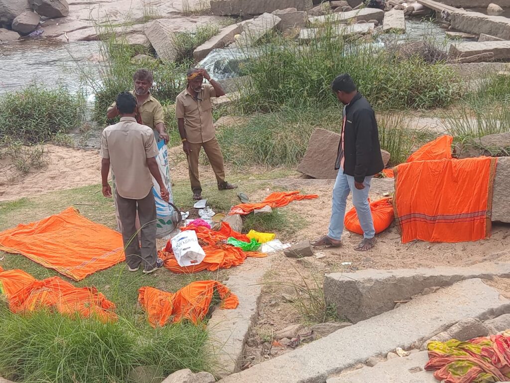 व्रत-मन्नत पूरी होने के बाद लोग स्नान कर तुंगभद्रा में ही कपड़े छोड़ जाते हैं